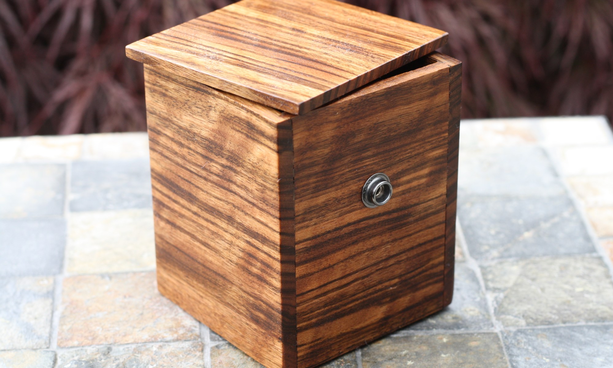 Tournament Custom – 125.00 Black Italian leather lined; with a 1 ¼” supple belt strapping finished using antiqued nickel snaps.  This box you can set on the table to intimidate your opponent; it is both beautiful and trolling if they know anything about wood screaming lets go.