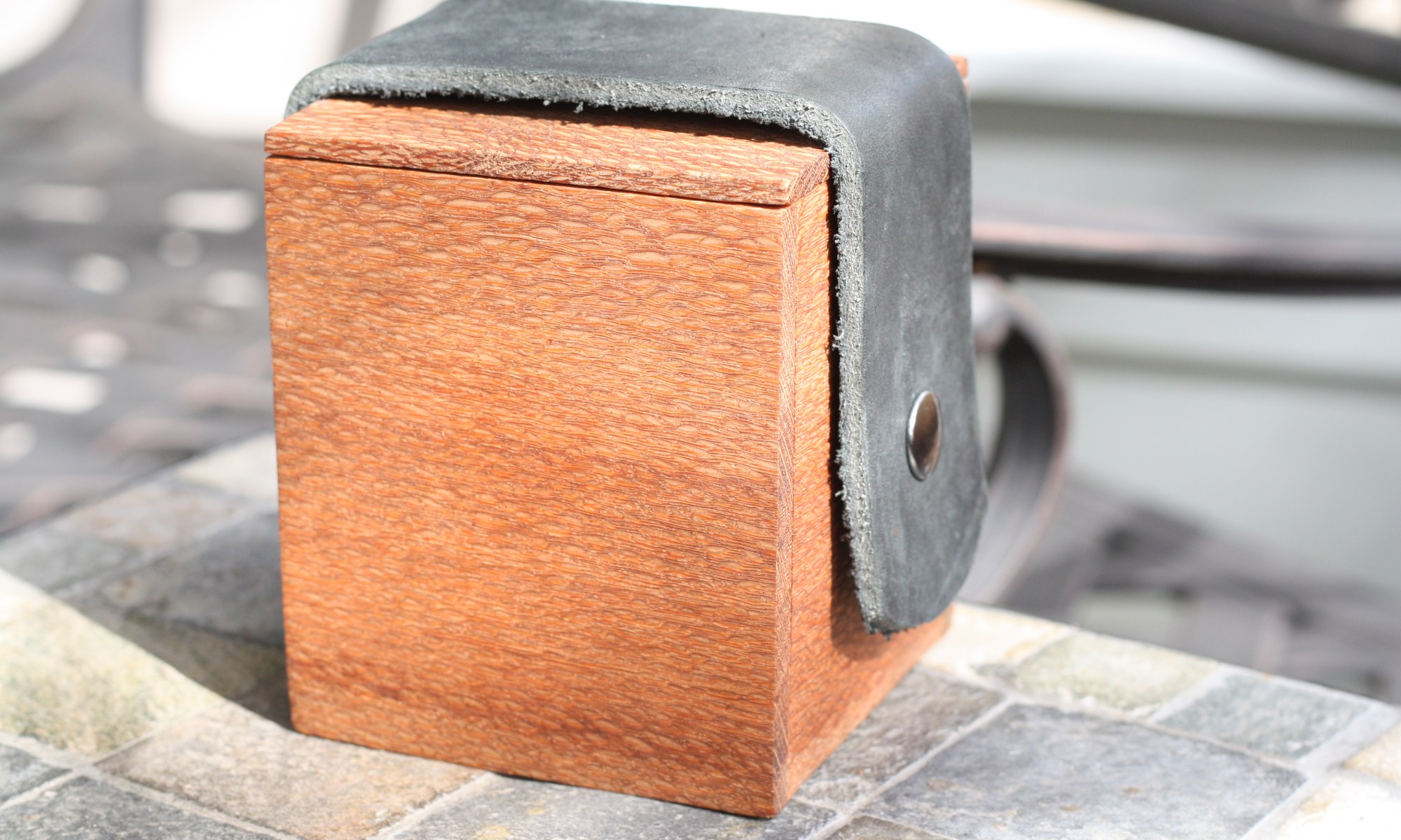 Tournament Custom – Black Italian leather lined with thick 2″ wide black leather belting strap using antiqued nickel snaps. This particular box has a very even pattern with dark lines on the lower quarter of the box on all sides. It is one of our featured boxes used for our website pictures. $85.00