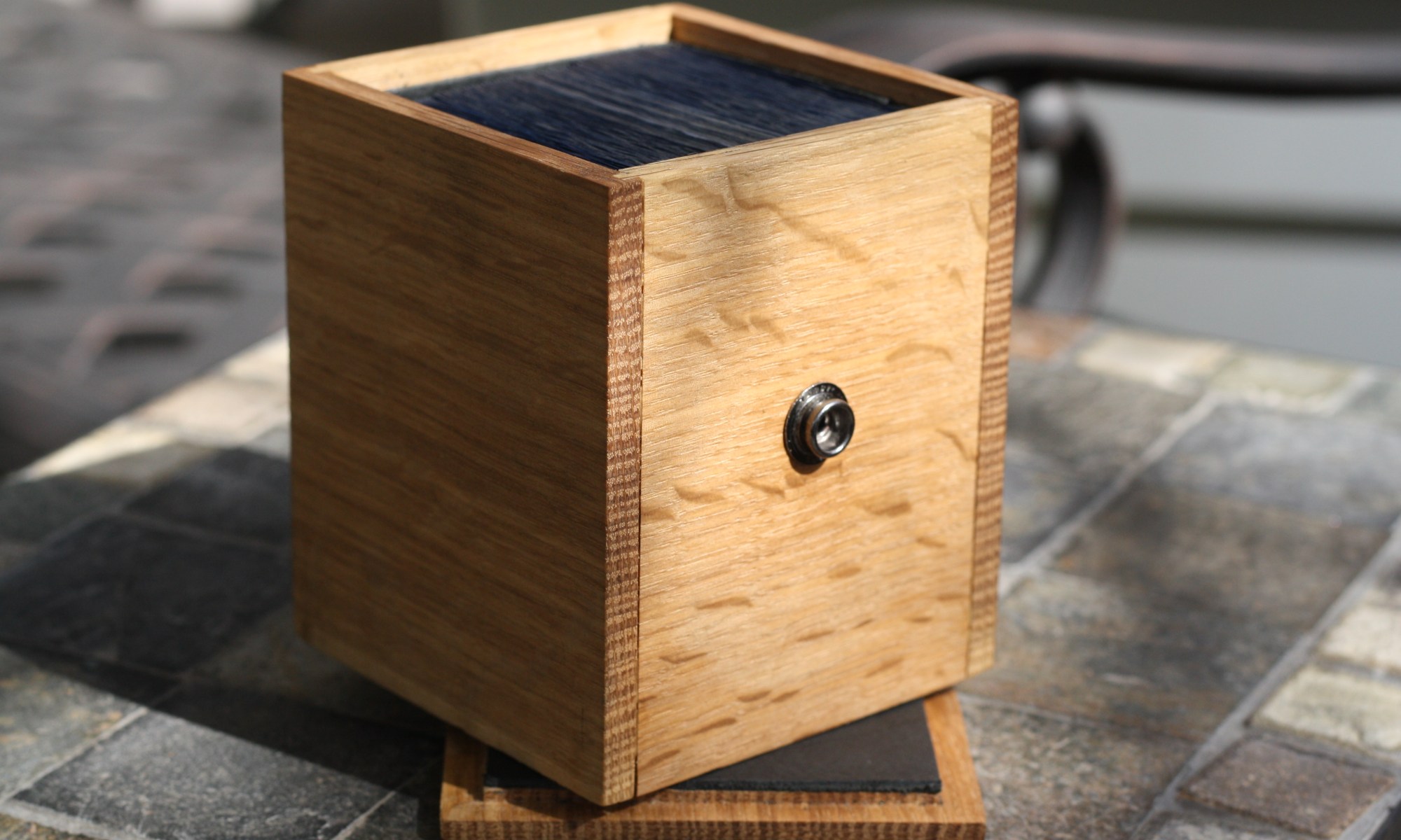 White Oak is a classical piece sturdy and ready to last for generations. At Pezui we try to use the highest quality Oregon grown white oak quarter sawn for high luster. This wood has bands of flecking chatoyancy (technical word for light refracting). This is the home team for us at Pezui and we are proud of the beautiful boxes that are produced with this material.